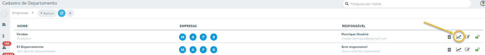 deve ser usado para definir as metas e orçamentos para cada Empresa do Departamento: