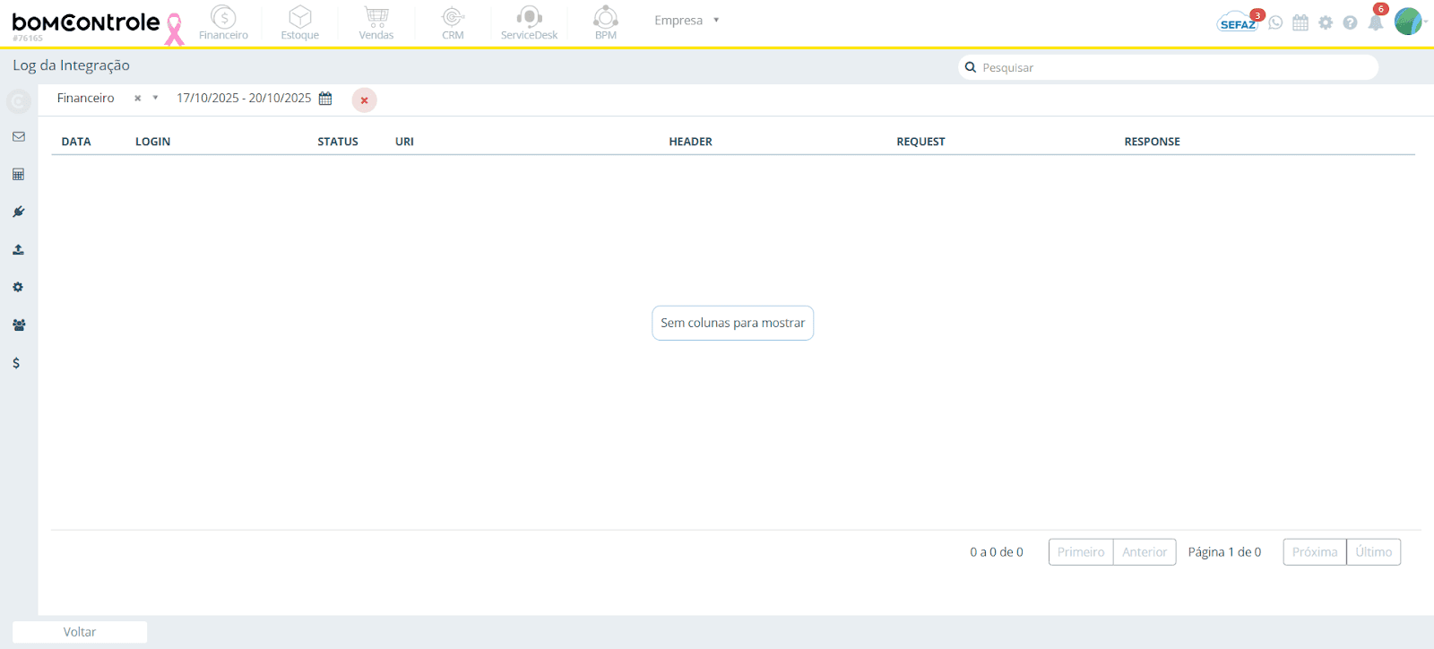 - Acesse os Logs de Integração para monitorar a comunicação: você poderá verificar se as chamadas do sistema externo estão chegando, se houve erros (como algum dado inválido sendo enviado) e assim por diante, facilitando a resolução de problemas.