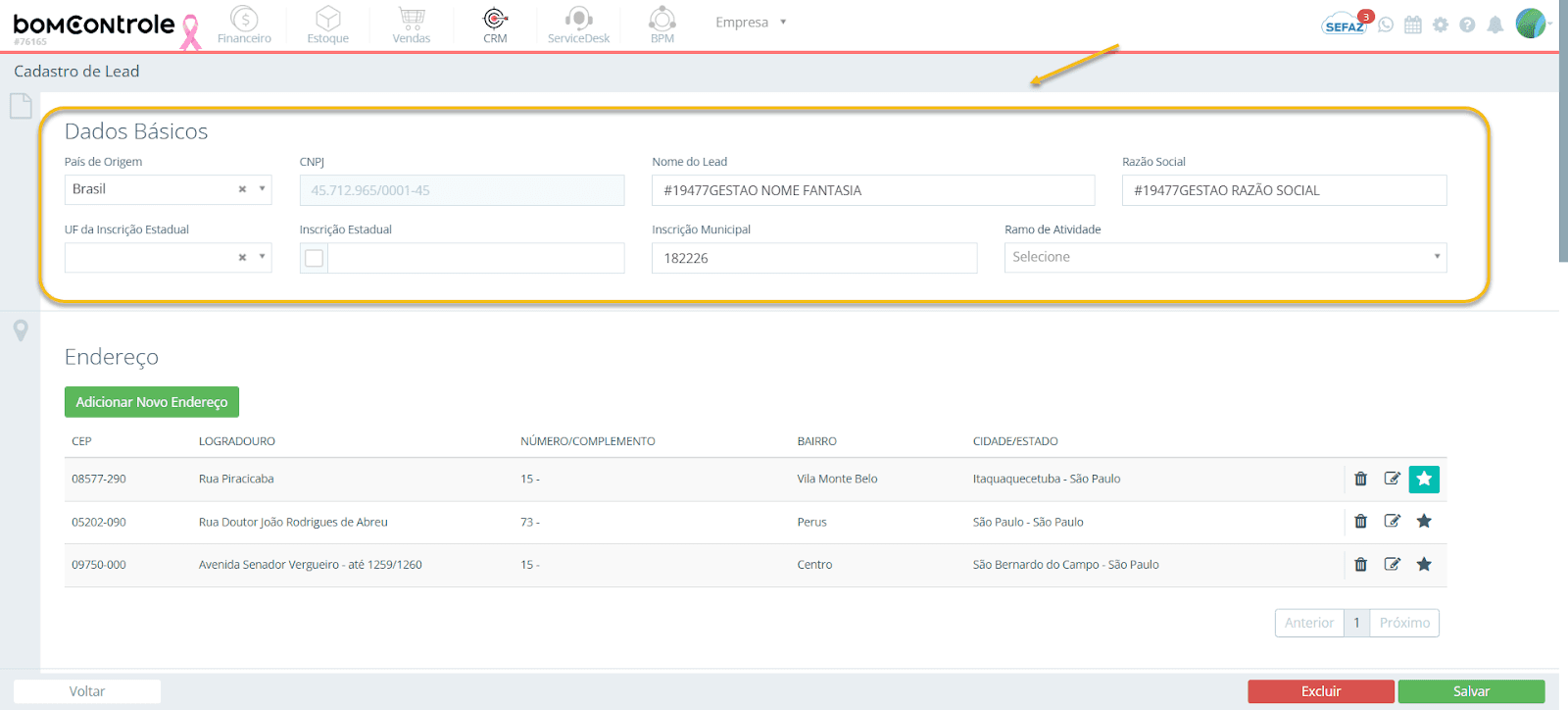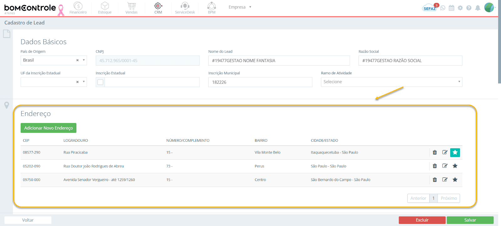 Impacto: Os endereços cadastrados no lead serão utilizados em vários módulos após o lead virar cliente: