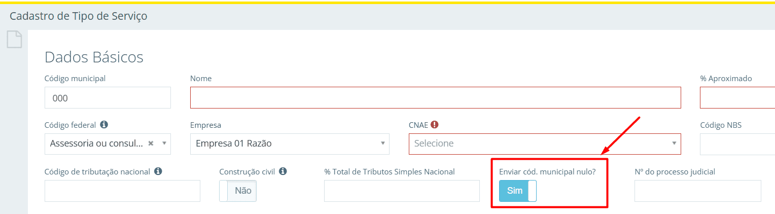 4. Se aplicável, preencha também o campo “Código NBS”.