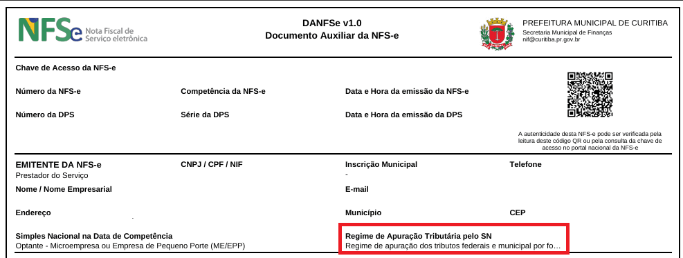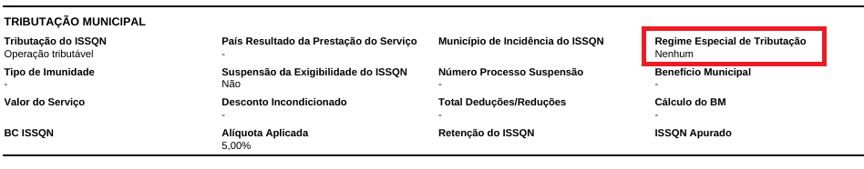 Acesse novamente a nota fiscal emitida e verifique o valor preenchido no campo “Regime Especial de Tributação”, conforme abaixo: