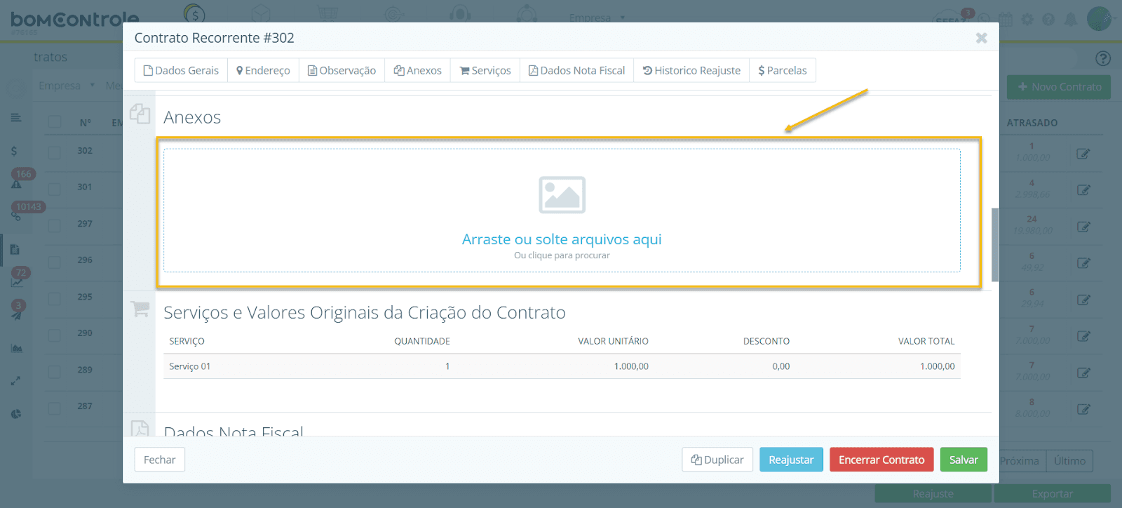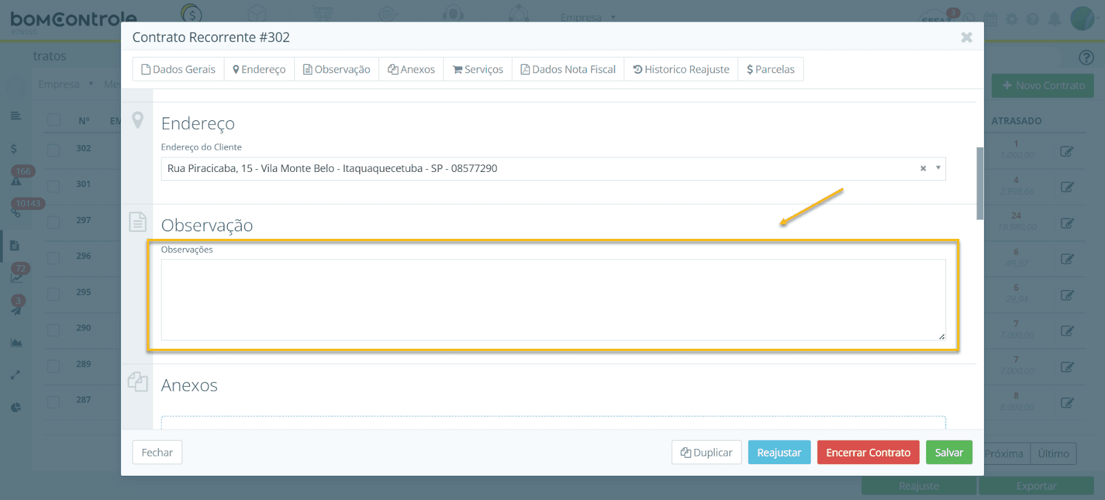 Dica: Utilize este recurso quando o contrato termina antes do previsto ou por rescisão – assim seu dashboard financeiro não contará mais com aquelas receitas, evitando projeções irreais.