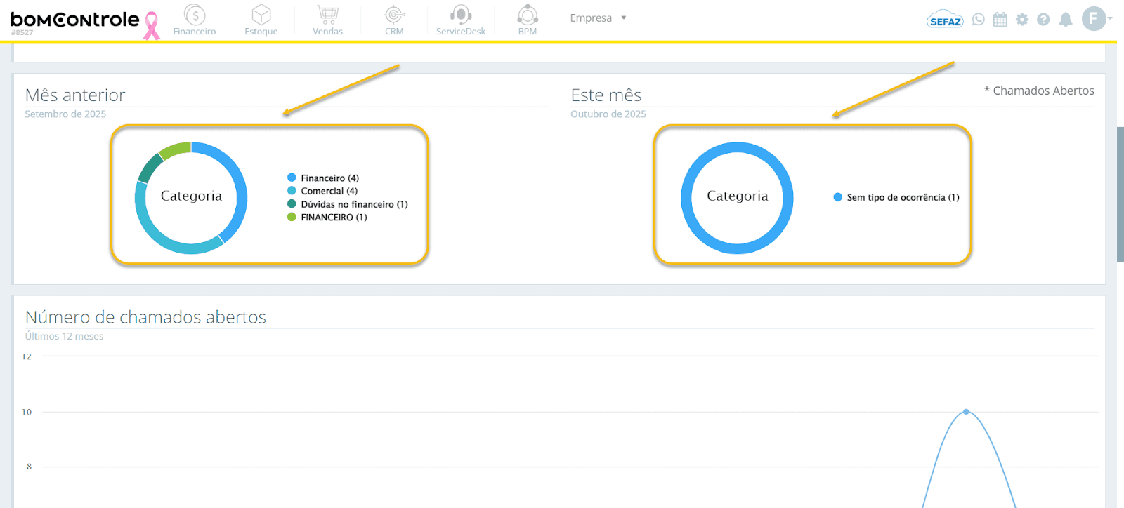 Lembre-se de que os gráficos refletem a qualidade dos dados inseridos: mantenha os chamados atualizados, feche os tickets assim que resolvidos e categorize-os corretamente. Assim, o dashboard sempre mostrará informações confiáveis.