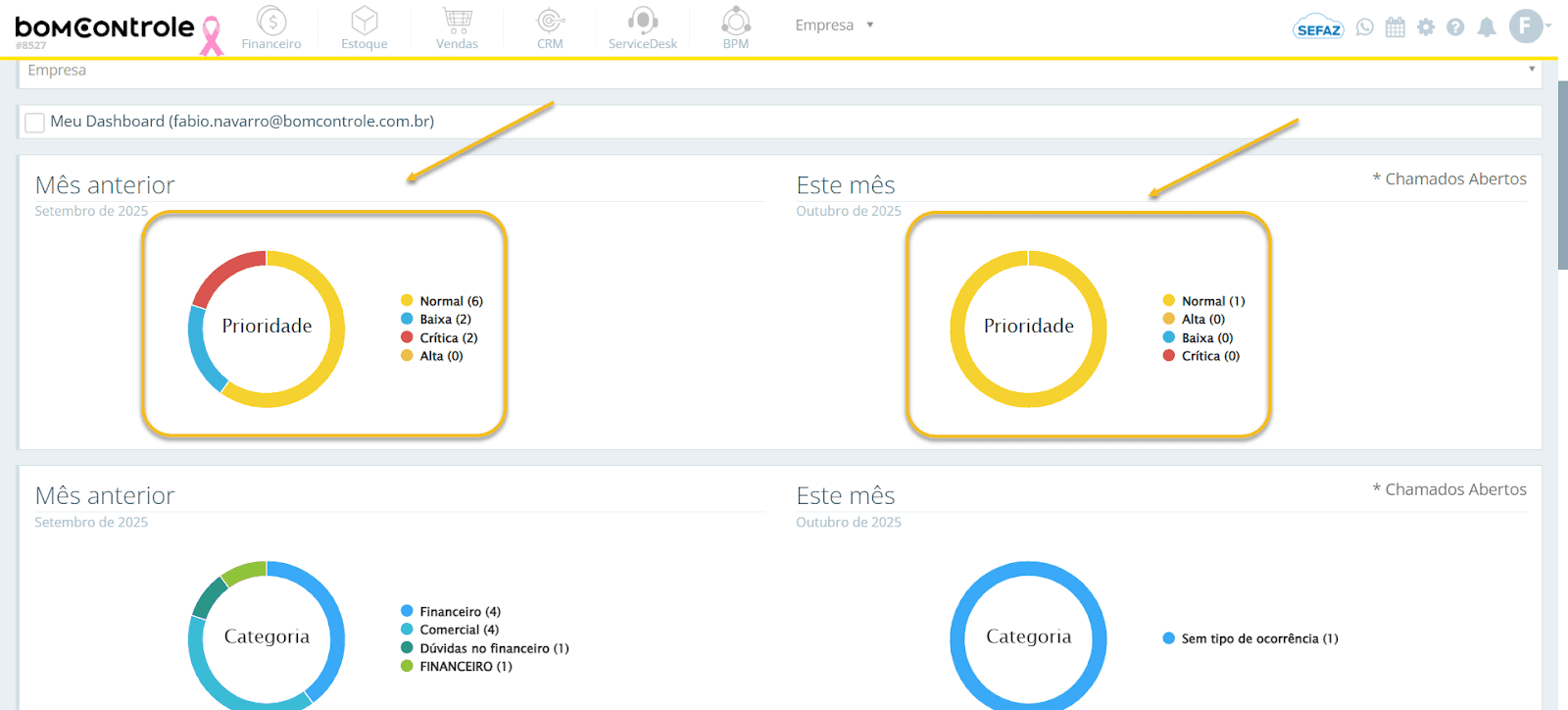 Figura 3 — Gráficos de Prioridade dos Chamados (Mês Anterior × Este Mês)