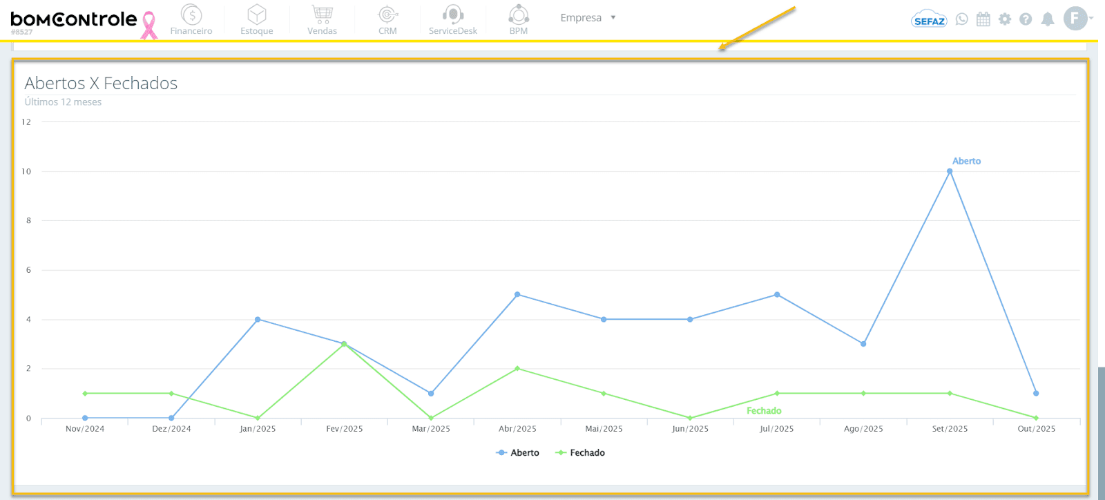 Gráfico “Abertos × Fechados” (12 meses): ⚠️